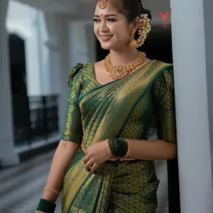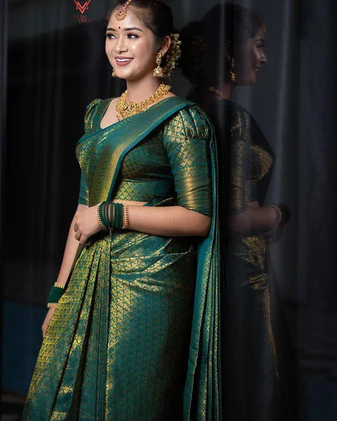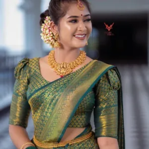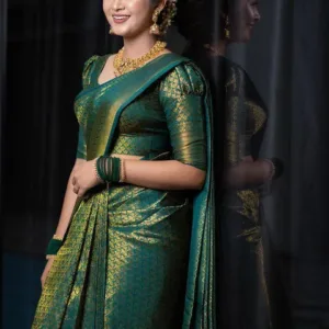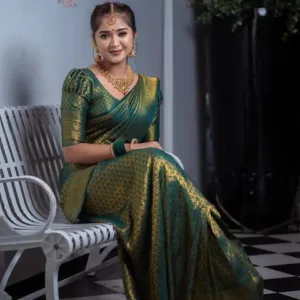 STUNNING DARK GREEN COLOUR SAREE WITH HEAVY BROCADE BLOUSE