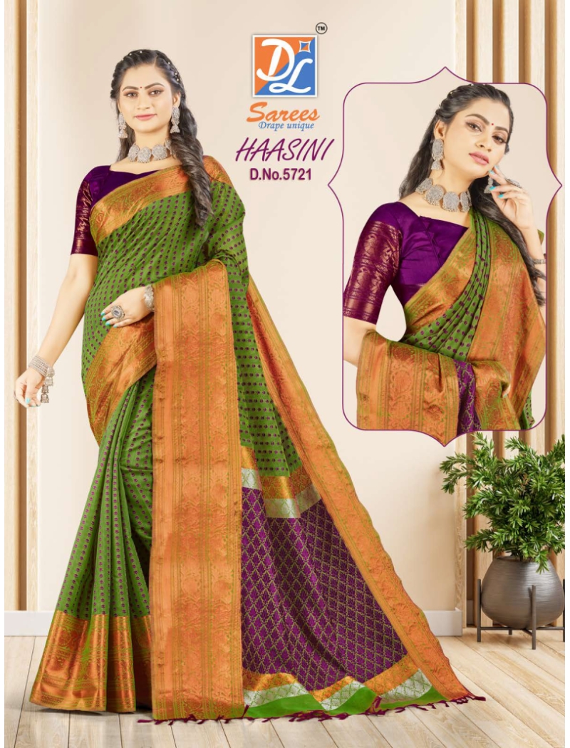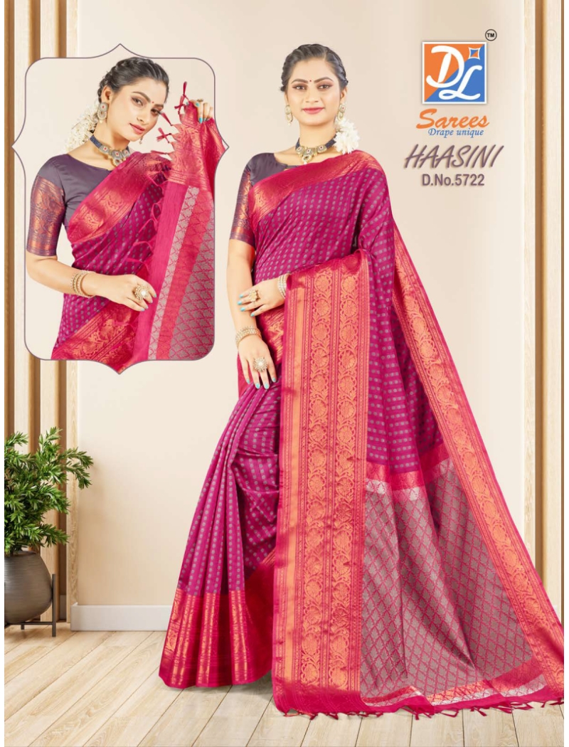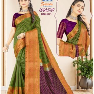 HAASNI – 1000 BUTTA CHETTINAD , Gorgeous Silk Cotton Saree with contrast grand pallu accompany with zari border contrast Blouse.