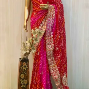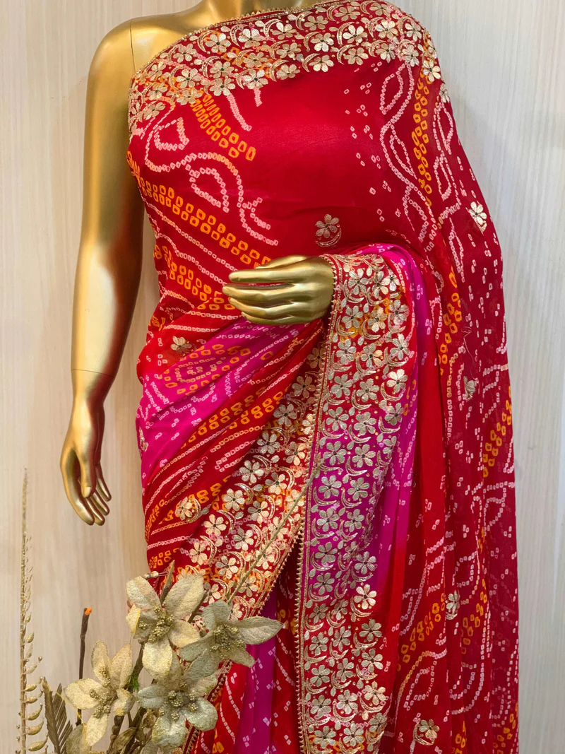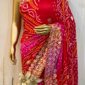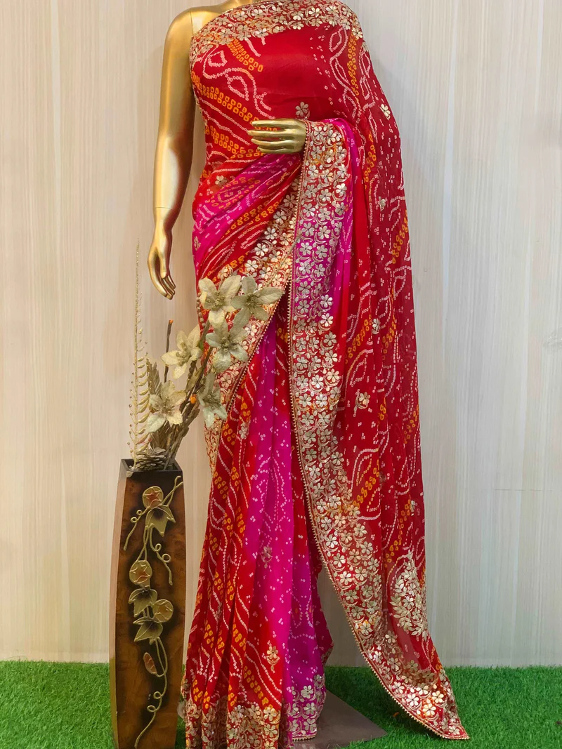 Pure Georgette, Inaya Bandhani saree to give you taste of Jaipur ethnic wear to make you look as special as it’s own uniqueness.